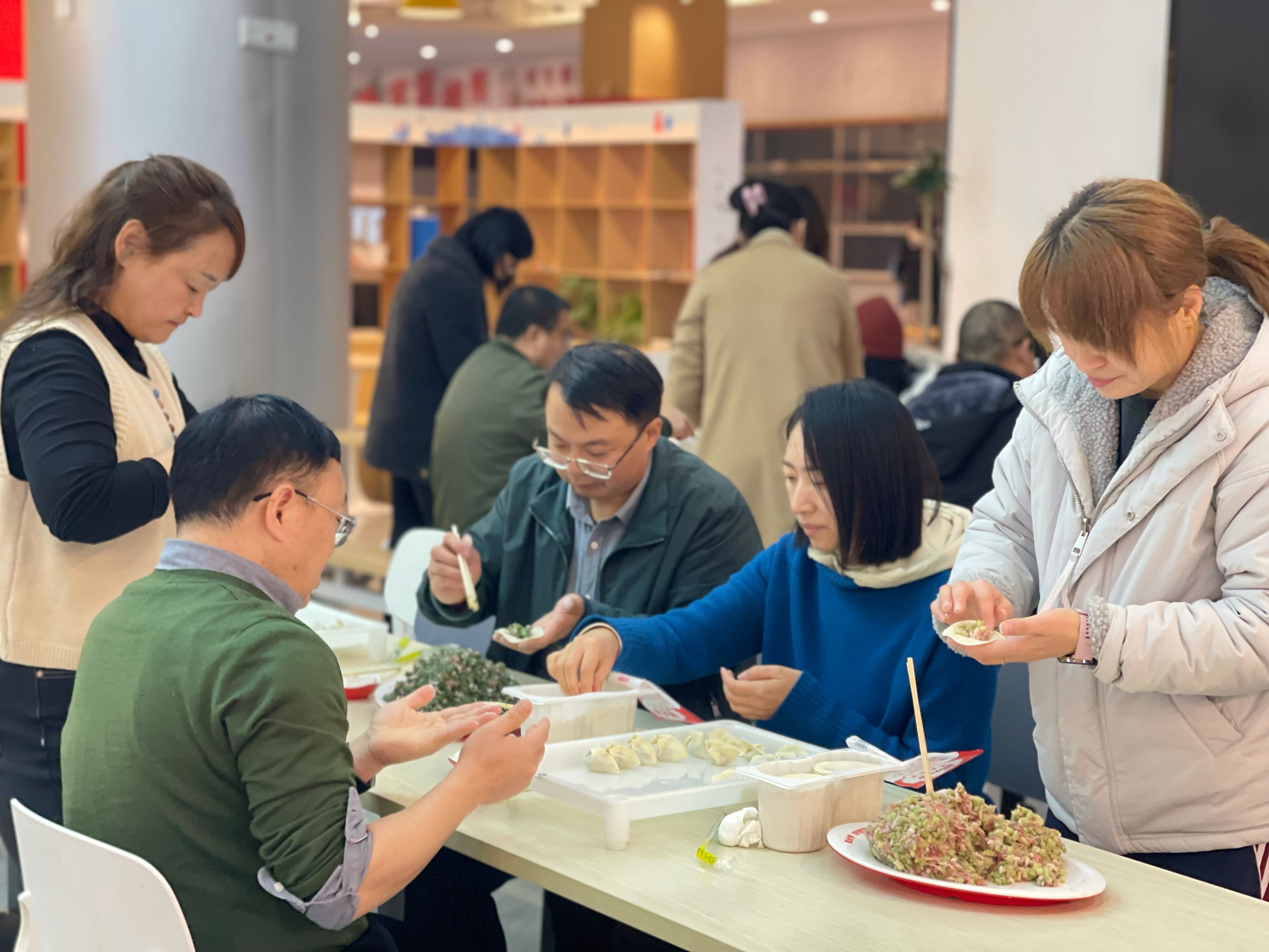 活动现场,学院工会提前准备了丰富的食材,老师们围坐在一起,熟练地包饺子,精心设计花样造型饺子。在欢声笑语中,大家互相交流包饺子的技巧,分享各自家乡的饺子特色,现场气氛热烈而温馨。学院党委书记李勤文在活动开场致辞中表示:“包饺子不仅是中国的传统习俗,更象征着团圆与祝福。希望通过这样的活动,让大家在繁忙的工作之余放松心情,感受学院大家庭的温暖,以更加饱满的精神状态迎接新年。”