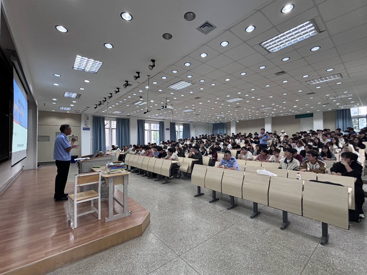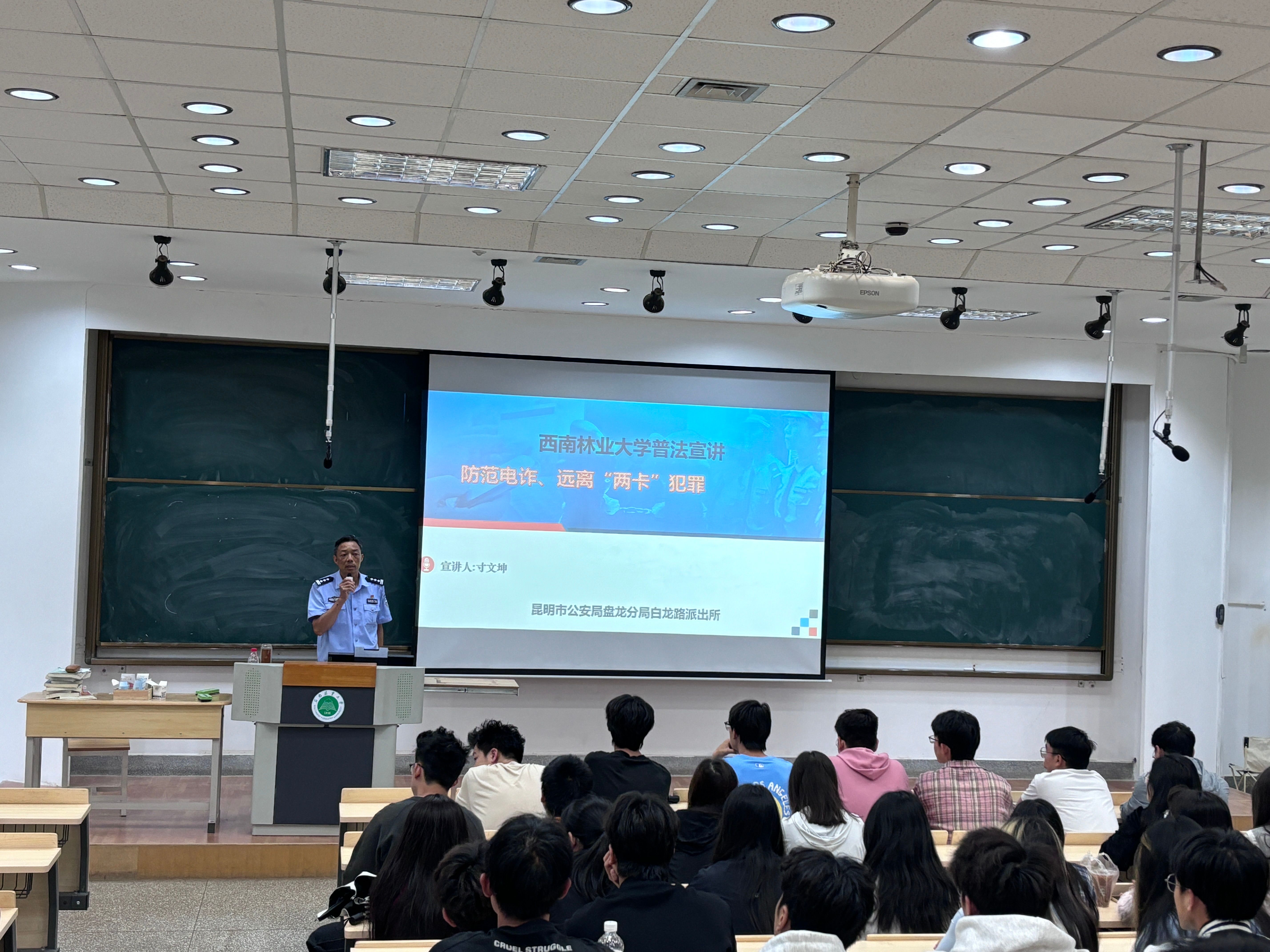 白龙派出所寸文坤警官围绕网络交友、刷单返利、网络贷款、冒充公检法、虚假购物等高校高发诈骗类型展开讲解。他结合辖区内大学生遭遇诈骗的真实案例,为同学们剖析诈骗分子实施诈骗的手段。为强化学习效果,讲座还设置互动问答环节,同学们参与热情高,现场气氛热烈。