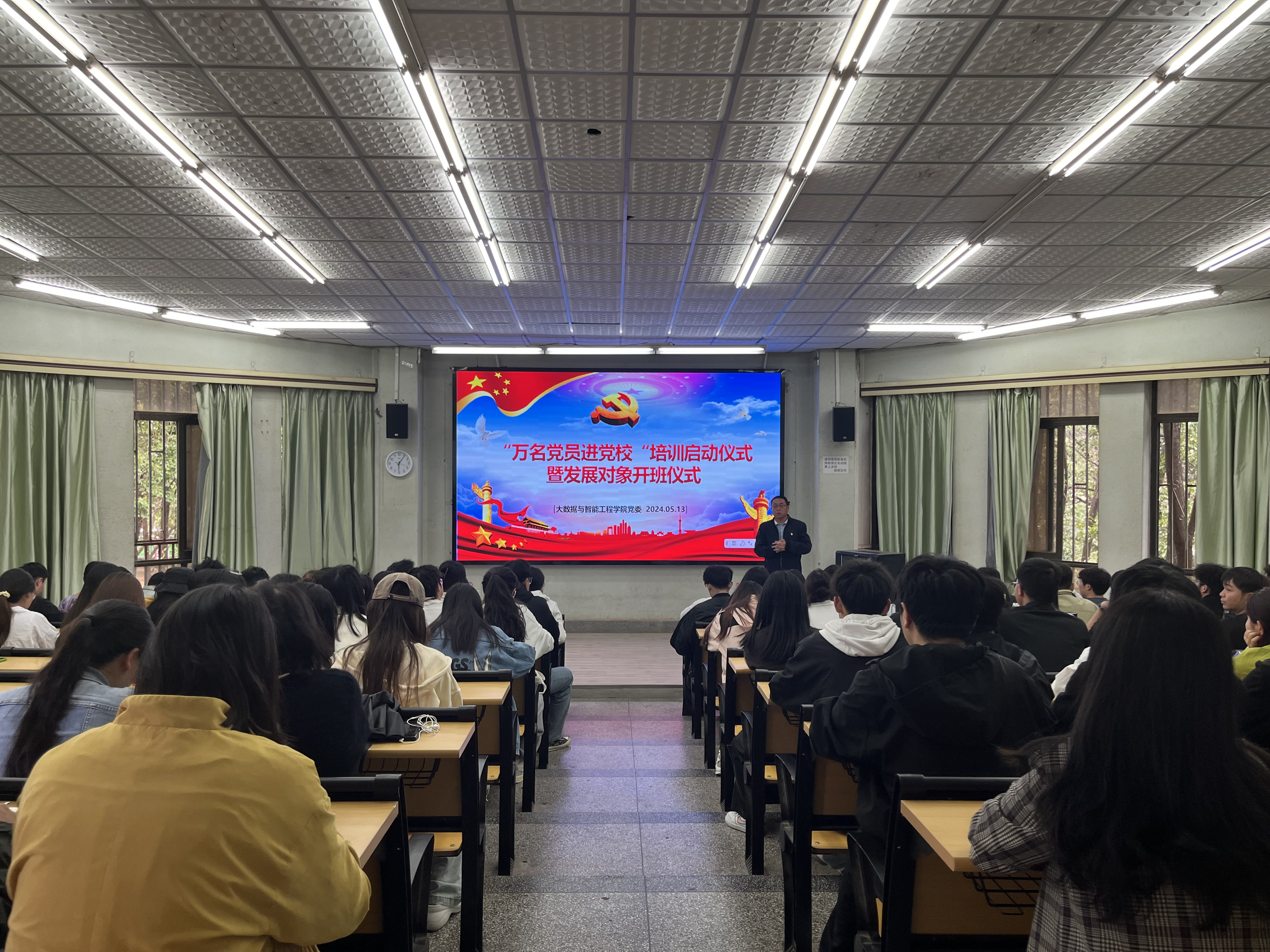 5月13日中午,大数据与智能工程学院2024年度“万名党员进党校”启动仪式暨发展对象开班仪式在信息楼204多媒体教室举行。院党委书记李勤文作动员讲话。学院2024年第一批发展对象及党员代表参加仪式并听取专题党课。