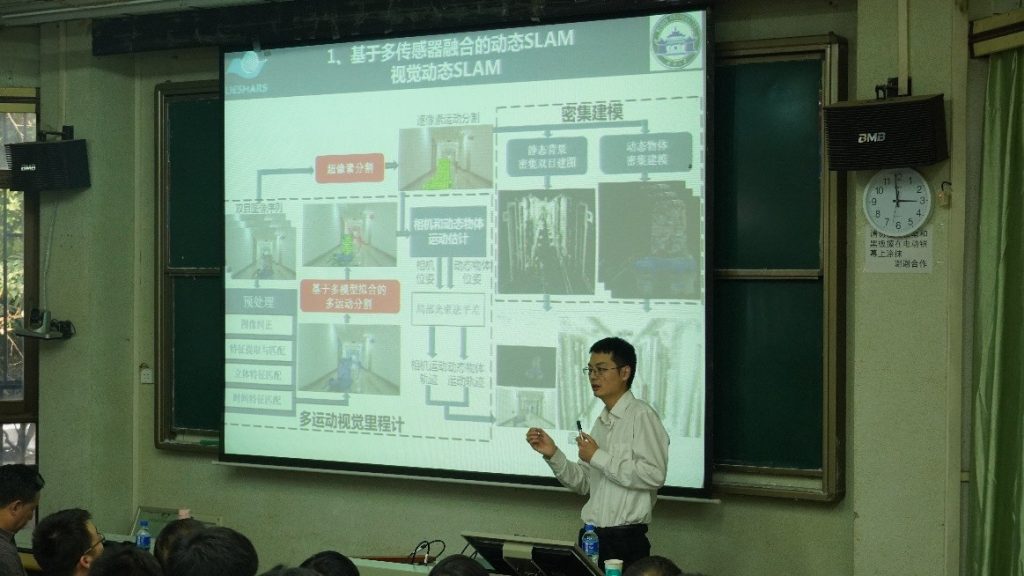 SLAM 是同步定位与地图构建 (Simultaneous Localization And Mapping) 的缩写,是应用于无人机、无人驾驶、机器人、AR等领域的核心、基础性技术。罗斌教授的首先介绍了基于多传感器融合的动态SLAM技术。从RGB相机-激光融合、视觉-激光SLAM及视觉动态SLAM三个方面进行了细致的讲解和演示。之后,罗教授进行了基于条纹的近距离三维测量技术的说明,分别对“大景深三维测量”和“多光谱三维测量”的原理、优越性及局限性进行了阐述。