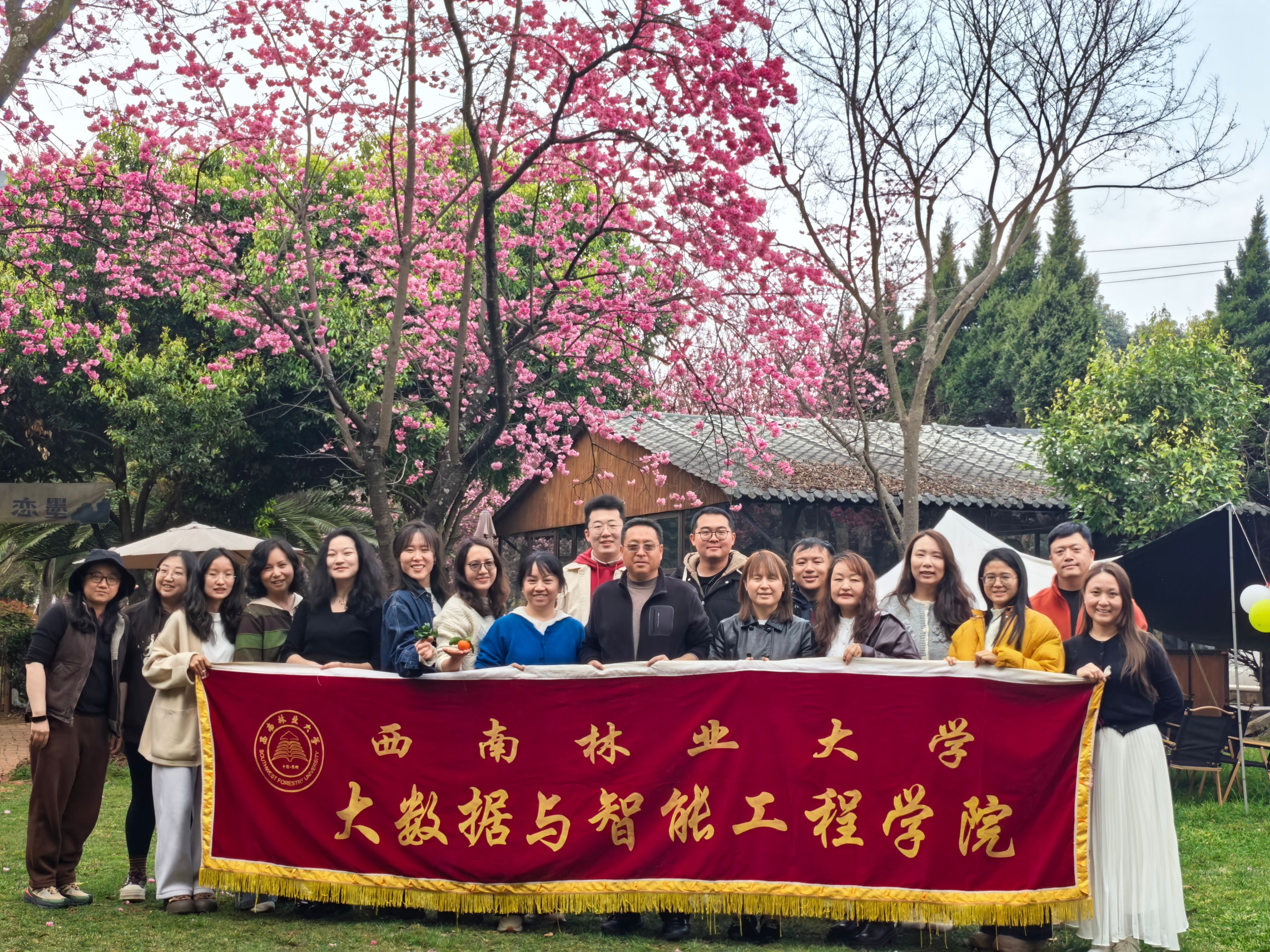 春日融融,花香四溢。2026年3月6日,大数据与智能工程学院全体教职工齐聚昆明市盘龙区双龙街道“墨恋树林花园”,开展了一场以“春意已满程,拾花入册间”为主题的春日工会活动。本次活动旨在春日踏青同时庆祝第116个“三八”国际劳动妇女节的到来,丰富教职工的业余生活,增强团队凝聚力,营造温馨和谐的工作氛围。